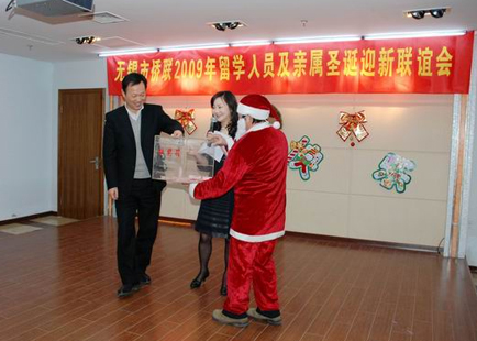 中新網(wǎng)12月25日電 據(jù)無錫市僑聯(lián)消息,12月20日下午,江蘇省無錫市僑聯(lián)、無錫市僑聯(lián)留學(xué)人員親屬聯(lián)誼會(huì)、無錫歸國(guó)留學(xué)人員創(chuàng)業(yè)商會(huì)在市華僑活動(dòng)中心舉辦了2009年無錫留學(xué)人員及親屬圣誕迎新聯(lián)誼會(huì)。無錫市委常委、統(tǒng)戰(zhàn)部長(zhǎng)周敏煒出席會(huì)議并講話。百余名在錫創(chuàng)業(yè)服務(wù)的歸國(guó)留學(xué)人員、部分留學(xué)人員家屬及市有關(guān)部門負(fù)責(zé)人參加了聯(lián)誼活動(dòng)。