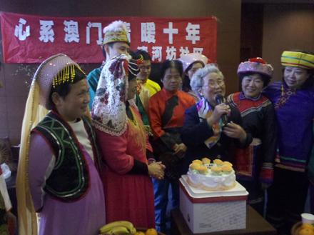 中新網(wǎng)12月28日電 據(jù)浙江僑聯(lián)網(wǎng)消息,12月20日是澳門回歸祖國十周年紀(jì)念日,浙江省杭州市上城區(qū)社區(qū)僑眷潘曼霞受澳門工會(huì)聯(lián)合總會(huì)邀請(qǐng)將遠(yuǎn)赴澳門參加澳門回歸十周年慶典活動(dòng)。12月15日中午,清河坊社區(qū)為僑眷潘曼霞舉行了歡送會(huì)。