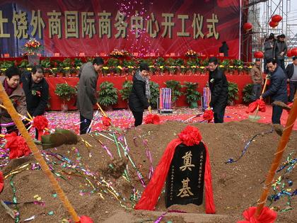 最后,由周錦宣布上饒外商國際商務中心正式開工,并為工程奠基,頓時,鞭炮齊鳴、彩球飄舞、鑼鼓喧天、禮花漫天開放,整個典禮儀式氣氛達到了高潮。