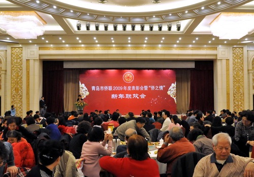 中新網(wǎng)1月20日電 據(jù)青島市僑聯(lián)消息,1月16日下午,山東省青島市僑聯(lián)在黃海飯店隆重舉辦了2009年度表彰會(huì)暨“僑之情”新年聯(lián)歡會(huì)。來(lái)自青島市各條戰(zhàn)線的400余名歸僑僑眷代表、駐青海外僑胞和僑聯(lián)工作者歡聚一堂,表彰先進(jìn),暢敘友情,喜迎新春。