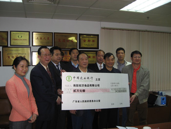 中新網(wǎng)1月22日電 據(jù)廣東僑網(wǎng)消息,廣東省僑辦主任吳銳成率領(lǐng)省、市僑辦一行8人于2010年1月20日上午赴廣州的僑資企業(yè)——南聯(lián)航空食品有限公司開展“送溫暖”活動(dòng),并代表省政府將2萬(wàn)元慰問(wèn)金送給該企業(yè)。