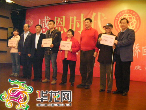 在上午的活動(dòng)中,家住重慶萬(wàn)盛區(qū)的歸僑僑眷陽(yáng)光,從重慶市僑聯(lián)領(lǐng)導(dǎo)手中,接過(guò)了5000元的特困助僑關(guān)愛(ài)基金。除此之外,還有來(lái)自沙坪壩、榮昌、大渡口3位特困僑眷,每人也分別獲得了5000元的助僑關(guān)愛(ài)基金。