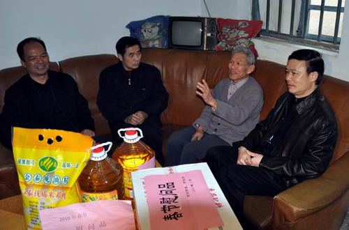 中新網(wǎng)2月10日電 據(jù)賀州市外僑辦消息,近日,廣西賀州市委副書記陳平、市政協(xié)副主席高子華、市政府副秘書長(zhǎng)邱鋒一行組成春節(jié)僑務(wù)慰問小分隊(duì)在寒風(fēng)與細(xì)雨中親切慰問全市困難歸僑(眷)、僑企代表,為他們送去黨和政府的關(guān)懷與問候。整個(gè)慰問行程由賀州市外僑辦主任唐敬春、副主任黃祥樹,八步區(qū)委常委、副區(qū)長(zhǎng)張國(guó)清,政協(xié)副主席李慶亮,外僑辦主任粟瑜等領(lǐng)導(dǎo)全程陪同。