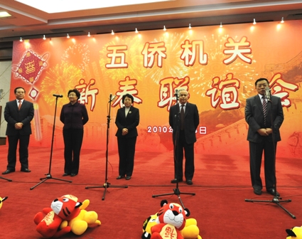 中新網(wǎng)2月12日電 據(jù)中國(guó)僑聯(lián)網(wǎng)消息,虎步奔騰開勝景,春風(fēng)浩蕩展鴻圖。2月8日下午,首都大酒店洋溢著節(jié)日的喜慶氣氛。中央“五僑”機(jī)關(guān)在這里隆重舉行2010年新春聯(lián)歡會(huì)!拔鍍S”機(jī)關(guān)干部職工和離退休老干部400多人歡聚一堂,喜迎新春佳節(jié)。