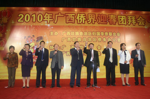 參加團拜會的還有:駐邕區(qū)直涉僑部門、區(qū)直有關(guān)部門;在邕的中國僑聯(lián)和自治區(qū)僑聯(lián)第八屆委員會委員;自治區(qū)僑聯(lián)第八屆委員會區(qū)內(nèi)顧問;在邕的自治區(qū)僑聯(lián)下屬團體代表;在邕的自治區(qū)僑界人大代表、政協(xié)委員;廣西華商會會員等共約300人。