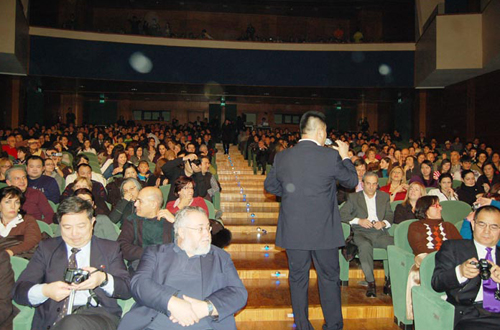接著,由空軍政治部文工團組成的“親情中華”藝術團的藝術家們?yōu)榇蠹冶硌萘司实奈膴使?jié)目,龐妮娜和楊帥表演的舞蹈令觀眾耳目一新,特別是他們所表現(xiàn)出來的扎實的基本功令在場的意大利觀眾驚嘆不已;當田毅走上觀眾席,“真朋友”的歌聲在每個人的身邊響起時,懂中文的觀眾向意大利友人傳遞著友情。梁召今獨唱的意大利語民歌“我的太陽”一曲震驚全場,掌聲如雷。