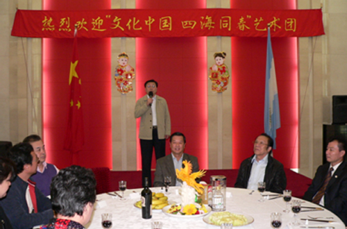 “文化中國•四海同春”赴南美藝術(shù)團團長,國僑辦副主任馬儒沛說,“今晚是慶功晚宴,也是送別晚宴,心情特別復(fù)雜。這幾天的慰僑演出中,得到了使館的大力支持。這次在阿根廷演出比較特別,華僑華人的參與面比較廣,反響比較強烈。阿根廷站是承上啟下的一站,我們將和巴西僑胞一起分享阿根廷的成功!