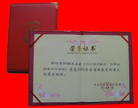 中新網(wǎng)3月1日電 據(jù)浙江僑聯(lián)網(wǎng)消息,辛勤耕耘終結(jié)碩果。年初捷報傳來:浙江省僑聯(lián)舉辦的“2009相約春天•僑界名媛故鄉(xiāng)行活動”榮獲2009年全省統(tǒng)戰(zhàn)宣傳重大創(chuàng)意活動獎。