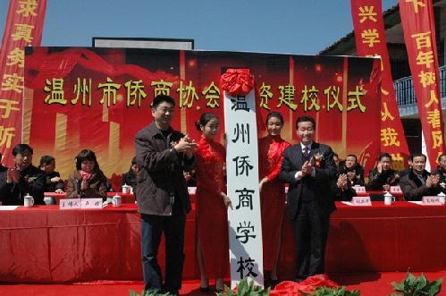 溫州市僑辦、僑商協(xié)會獲悉上述情況后,積極與泰順縣有關(guān)部門與領(lǐng)導(dǎo)取得聯(lián)系,并決定為該校捐資120萬元用于校安工程建設(shè),經(jīng)協(xié)商,新建的學(xué)校命名為“溫州僑商學(xué)!薄