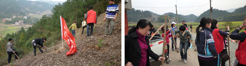 一到植樹地點,大家就扛起工具,三四人一組,分工協(xié)作,你一鍬我一鏟,挖坑、種樹、填土,干的熱火朝天,經(jīng)過義工與當?shù)卮迕竦墓餐Γ卜N下杉木苗1500多株。(馮振武 姜玲菊 )