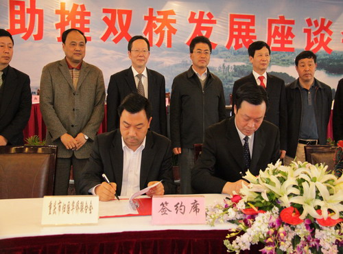 重慶市僑聯(lián)副主席徐萬忠代表市僑聯(lián)與雙橋區(qū)人民政府代表分別在戰(zhàn)略合作協(xié)議上簽字。