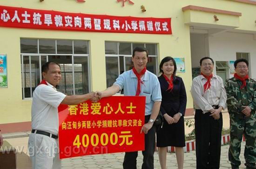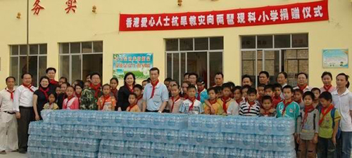 近段時間,廣西百色市右江區(qū)旺甸瑤族鄉(xiāng)兩琶村小學(xué)遭遇特大旱災(zāi),學(xué)校蓄水池?cái)嗨嗳,引起了社會各界的廣泛關(guān)注,也牽動了廣西壯族自治區(qū)、百色市、右江區(qū)僑辦領(lǐng)導(dǎo)的心。經(jīng)廣西僑辦搭橋牽線,香港謝家忠、葉林慧儀、原秋明等愛心人士,心系瑤寨小學(xué)生,千里奔瑤鄉(xiāng),將一縷縷清澈的泉水運(yùn)送到了旺甸瑤族鄉(xiāng)兩琶村小學(xué)。
