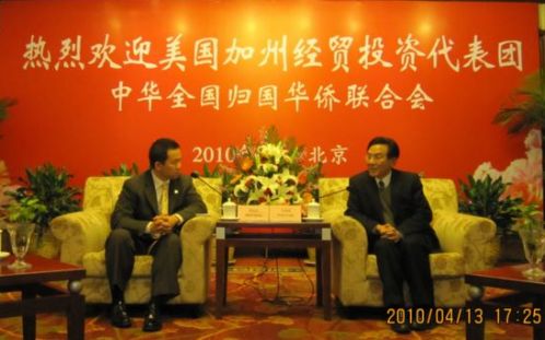 中新網(wǎng)4月14日電 據(jù)中國(guó)僑聯(lián)網(wǎng)站消息,4月13日,中國(guó)僑聯(lián)副主席王永樂(lè)在華僑大廈會(huì)見(jiàn)了以美國(guó)加州圣蓋博市市長(zhǎng)黃裕民為團(tuán)長(zhǎng)的加州經(jīng)貿(mào)及地產(chǎn)投資代表團(tuán)一行。