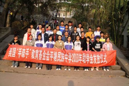 中新網(wǎng)4月26日電 據(jù)貴州省僑聯(lián)消息,2010年4月20日,美國(guó)手牽手教育基金會(huì)上學(xué)期助學(xué)金發(fā)放儀式在平塘民族中學(xué)舉行。54名貧困學(xué)生再次得到17476元愛心資助。州僑聯(lián)副主席楊宣貴、縣政協(xié)副主席、縣委統(tǒng)戰(zhàn)部部長(zhǎng)嚴(yán)福先參加了助學(xué)金發(fā)放儀式,并作了講話。
