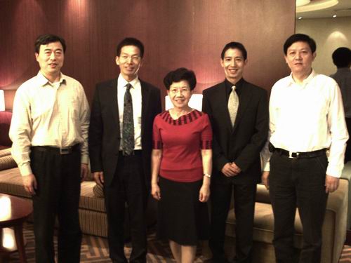中新網(wǎng)5月10日電 據(jù)江蘇省僑聯(lián)消息,5月7日,江蘇省僑聯(lián)主席郁美蘭、副主席史宇在江蘇省南京市親切會(huì)見了江蘇省僑界專業(yè)人士聯(lián)合會(huì)理事、南京大學(xué)德國校友會(huì)會(huì)長、南京大學(xué)歐洲校友會(huì)聯(lián)合會(huì)主席、IBM國際商業(yè)機(jī)械公司資深執(zhí)行官王榮虎博士。南京大學(xué)校友總會(huì)副會(huì)長兼秘書長高澎、南京大學(xué)德國校友會(huì)副會(huì)長胡睿參加會(huì)見。