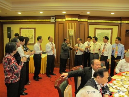 中新網(wǎng)5月10日電 據(jù)廣東僑網(wǎng)消息,5月7日晚,廣東省僑辦主任吳銳成、副主任黎靜在北京京西賓館設宴歡迎參加第五屆世界華僑華人社團聯(lián)誼大會的部分僑領。