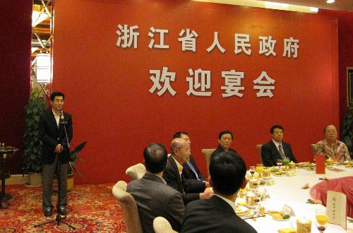 中新網(wǎng)5月18日電 據(jù)浙江僑網(wǎng)消息,5月13日晚,浙江省政府在花中城友誼廳舉行宴會(huì),熱烈歡迎參加第五屆世界華僑華人社團(tuán)聯(lián)誼大會(huì)的80余位海外華僑華人社團(tuán)負(fù)責(zé)人。浙江省副省長(zhǎng)龔正,省政府副秘書(shū)長(zhǎng)夏海偉,國(guó)僑辦文化司副司長(zhǎng)周虹出席宴會(huì)。