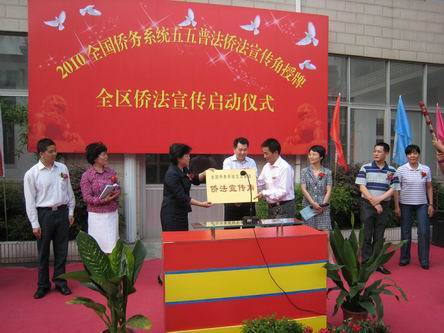 活動(dòng)儀式上,江蘇省僑辦副主任季俊秋和常州市僑辦主任蔡楚秋共同為奔牛鎮(zhèn)“僑法宣傳角”授牌,并向鎮(zhèn)領(lǐng)導(dǎo)贈(zèng)送了電腦和打印機(jī)。