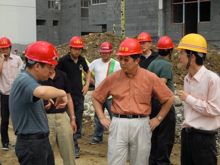 在中國僑聯(lián)援建北川中學(xué)指揮部指揮長劉奇、副指揮長王厚增、羅顯禮、蔣蓓,北川縣副縣長周福蘭等人的陪同下,喬衛(wèi)深入施工現(xiàn)場,逐樓詳細(xì)查看了施工建設(shè)情況,并召開會議聽取援建指揮部、設(shè)計(jì)、施工、監(jiān)理和審計(jì)等參建單位的工作匯報(bào),協(xié)調(diào)了有關(guān)問題。