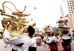 時(shí)光流逝,一些中國(guó)古老的民間習(xí)俗在許多地方都漸漸消失了,但澳門(mén)卻保留得很完整。比如“舞醉龍”,在它的原產(chǎn)地中山市石歧,已多年看不到了,只有在澳門(mén),才可以一睹它的風(fēng)采。 澳門(mén)的傳統(tǒng)舞獅也是這樣。每年農(nóng)歷大年初二,都要舉行“醉龍醒獅大會(huì)”!白睚垺本褪巧厦嫣岬降,它與常見(jiàn)的舞龍不同,只有龍頭和龍尾,沒(méi)有龍身。舞醉龍的武師,邊舞邊被人灌酒,以致帶有幾分醉意,舞姿豪放!靶血{”就是將一頭新“獅子”點(diǎn)睛開(kāi)光,儀式十分隆重。 武師認(rèn)為,新來(lái)的獅子,只是一個(gè)陌生的道具,開(kāi)光后,才會(huì)賦予其生命、靈性,才能與人融為一體,成為一頭活靈活現(xiàn)的生靈。開(kāi)光時(shí),要在案上鋪上紅布,擺上一只烤乳豬,一只白雞供奉神祉,繼而燃放鞭炮,敲鑼打鼓。擔(dān)任點(diǎn)睛開(kāi)光重任的,當(dāng)屬資格最老、最年長(zhǎng)、最備受敬重者。他在獅頭上灑幾滴清水,用朱紅的筆點(diǎn)在獅子的眼睛上,于是獅子開(kāi)始蠕動(dòng),慢慢抬起頭,突然之間跳躍起來(lái),隨著鼓樂(lè)抖擻身軀,象是長(zhǎng)眠之后的猛醒。開(kāi)光之后,在場(chǎng)的人都要分食一塊烤乳豬,據(jù)說(shuō)吃了以后可以強(qiáng)身健體,久戰(zhàn)沙場(chǎng),百戰(zhàn)百勝。