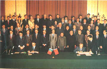 歷史性時(shí)刻――中華人民共和國與葡萄牙共和國一九八七年四月十三日在北京共同簽署關(guān)于澳門問題的聯(lián)合聲明。