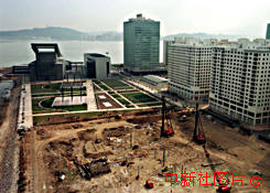 中葡雙方就澳門(mén)政權(quán)交接儀式的會(huì)場(chǎng)選址問(wèn)題達(dá)成共識(shí),會(huì)場(chǎng)將是建在澳門(mén)文化中心與東方文華店之間的臨時(shí)場(chǎng)館。圖為場(chǎng)地現(xiàn)狀。