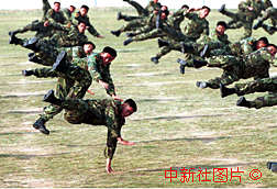 解放軍駐澳門部隊?wèi)?zhàn)士表演格斗術(shù)。