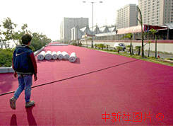 澳門新口岸海邊道路加鋪紅色地毯