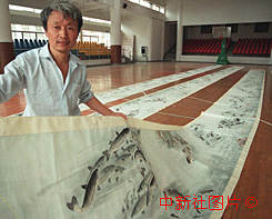 素有“江南漁翁”之稱的安徽省蕪湖市國(guó)畫家王宗榮先生,近日繪制了一幅長(zhǎng)一百五十米、繪有一千九百九十九條長(zhǎng)江全流域群魚的巨作,以賀澳門回歸。作者:吳芳