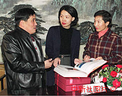 今年四十五歲的北京殘疾人周志武(左),近日將自己和愛(ài)人親自攝影、印放并制作的五十本《今日北京》攝影集,交予國(guó)務(wù)院港澳辦澳門司的負(fù)責(zé)人,委托轉(zhuǎn)交澳門殘聯(lián)。