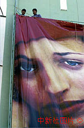 澳門(mén)回歸充滿商機(jī),一家國(guó)際時(shí)裝連鎖店在鬧市高樓上掛起巨幅人像吸引顧客。