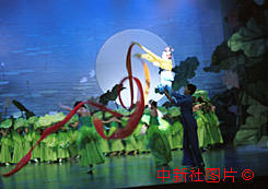 "舞影對月賀團圓"--中國文化部主辦的慶回歸演出排演一鏡頭。 中新社傳真 陳佳攝