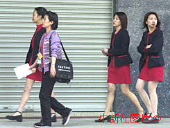 參加澳門回歸各項工作的服務(wù)小姐,清晨以整齊著裝上班。