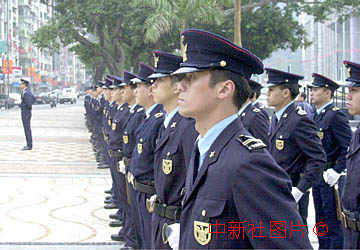 澳門警方儀仗隊(duì)為參加政權(quán)交接和回歸慶典的多項(xiàng)活動(dòng),加緊進(jìn)行演練。