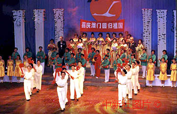 上海市僑聯(lián)十二月十七日舉行“慶祝澳門回歸、迎接2000年”文藝匯演,一千多名僑界人士及港澳同胞親屬濟(jì)濟(jì)一堂,共同抒發(fā)對(duì)澳門回歸祖國的喜悅之情。