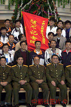 中國(guó)人民解放軍進(jìn)駐澳門部隊(duì)隨軍記者團(tuán)18日在珠海成立,廣州軍區(qū),總政治部,駐澳部隊(duì)領(lǐng)導(dǎo)與中外記者合影。中新社數(shù)碼傳真 王瑤攝