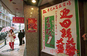 澳門一家商店特意為回歸舉行優(yōu)惠大特買,酬謝此間來澳門的各界人士。 中新社傳真 王瑤攝