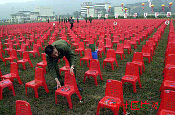 解放軍駐澳部隊戰(zhàn)士18日在珠海軍營擺放座椅,為明天的歡送會布置會場。中新社數(shù)碼傳真 王瑤攝